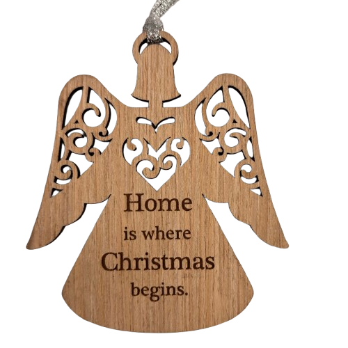 Wooden angel home is where ornament