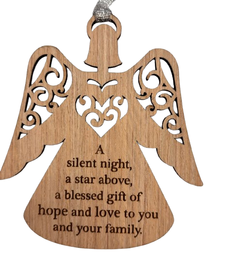 Wooden angel silent night ornament