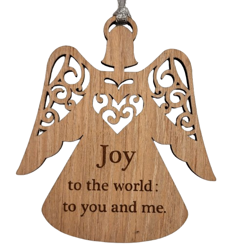 Wooden angel joy to world ornament