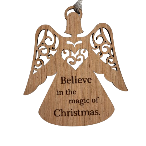Wooden angel believe ornament