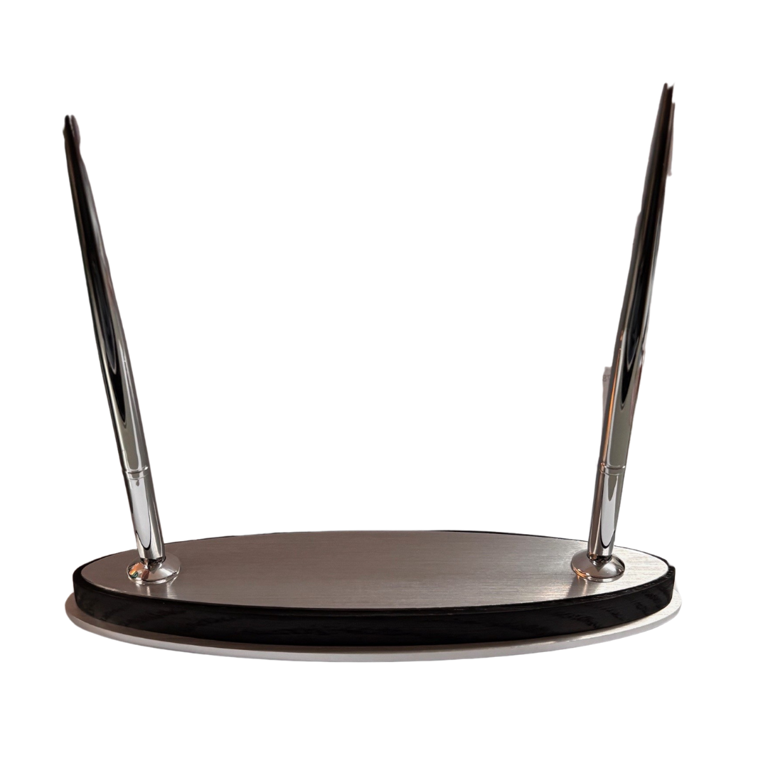 Add a touch of elegance to any desk with this double silver pen set, featuring two silver pens with smooth black ink displayed on a sleek...