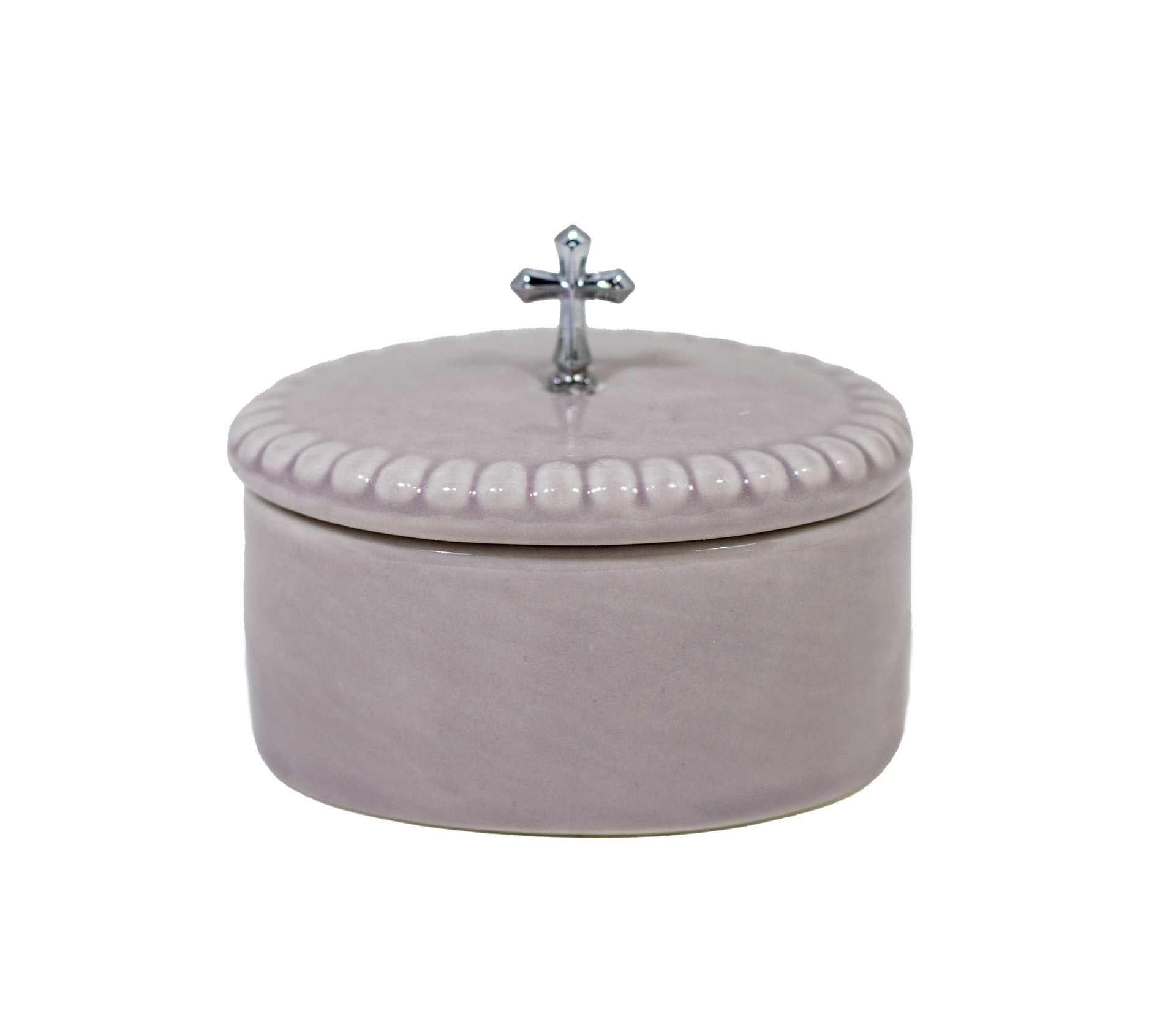 This elegant 2-piece grey rosary set comes complete with a matching presentation box, making it perfect for prayer, daily devotion, gifting, or keepsake use. The rosary features beautifully crafted beads paired with durable ceramic and zinc-alloy components, offering a classic, timeless design.